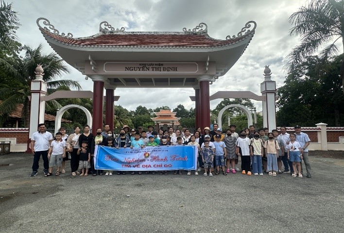 - 6h30 Đoàn lê xe đến di tích Đền Thờ Nguyễn Thị Định, Lương Hoà Giồng Trôm – Bến Tre, tại đây đoàn tham quan di tích, thắp hương, dâng hương, nghe tiểu sử cuộc đời sự hoạt động cách mạng Nữ Tướng Nguyễn Thị Định.